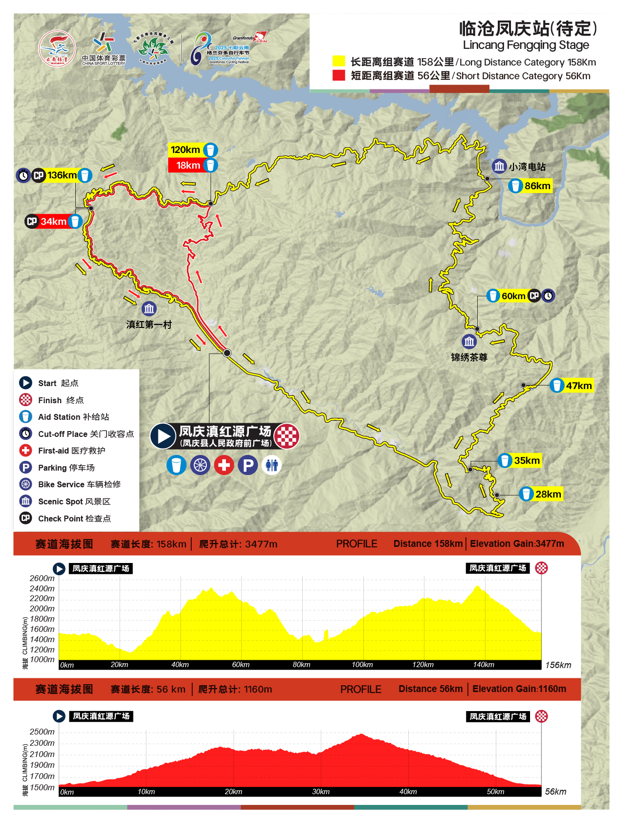 短距离组:56公里,海拔爬升:1160m(仅限山地车型+公路车型)