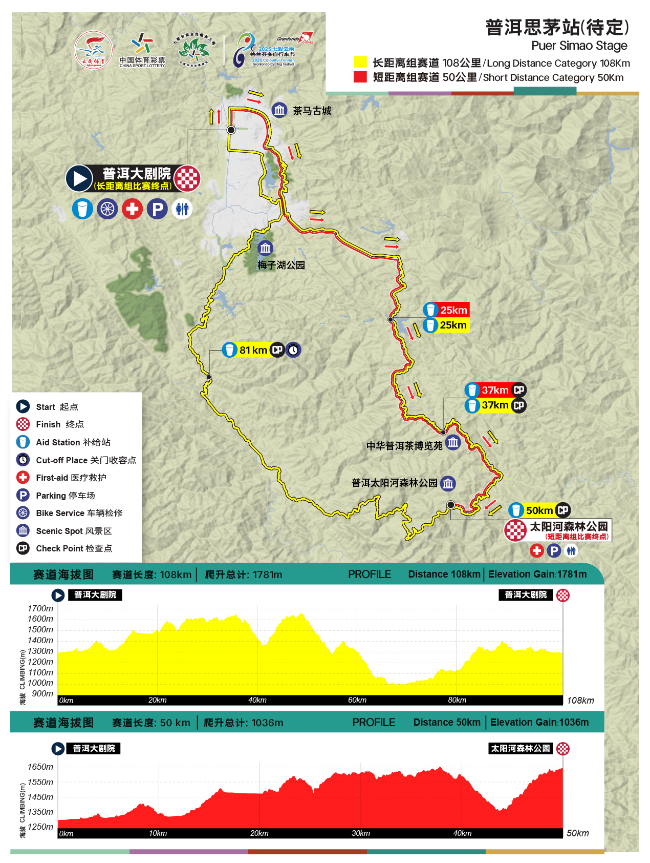 长距离组:108公里,海拔爬升:1781m(仅限公路车型)
